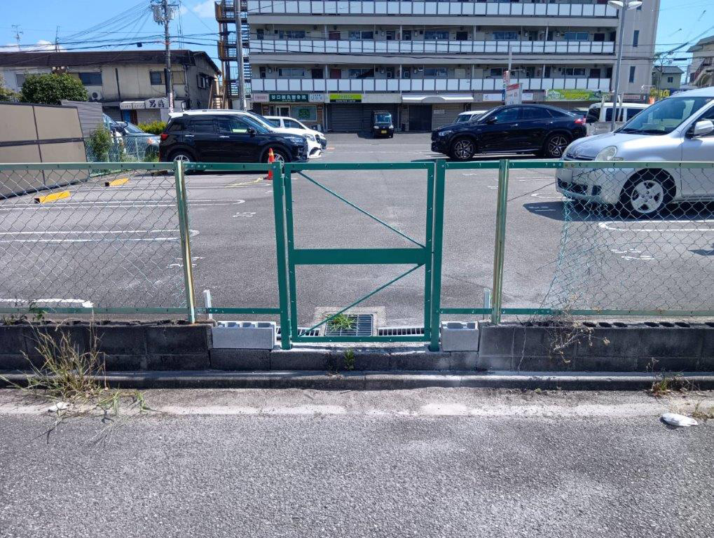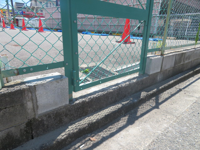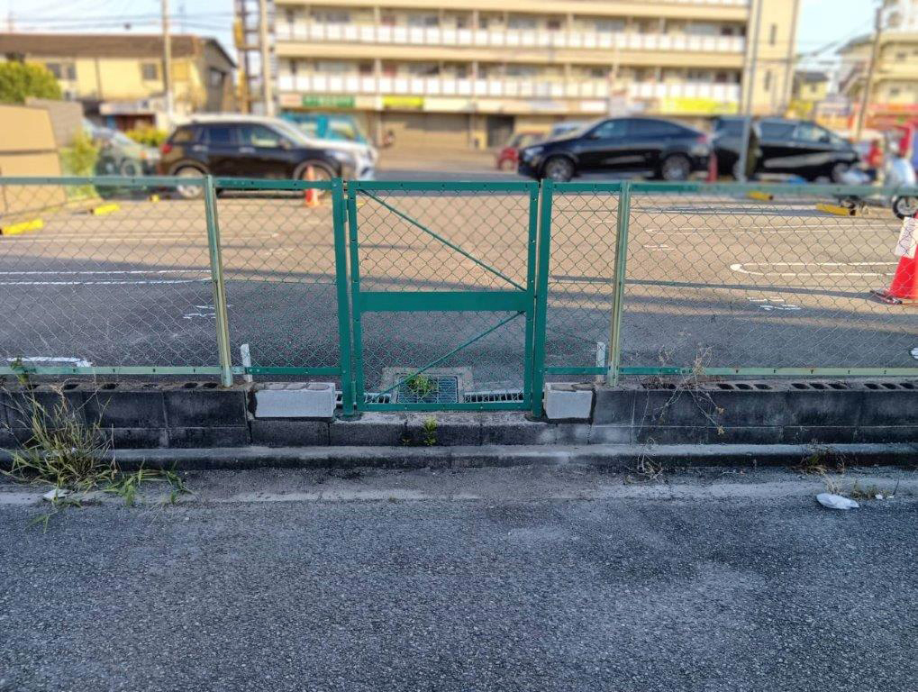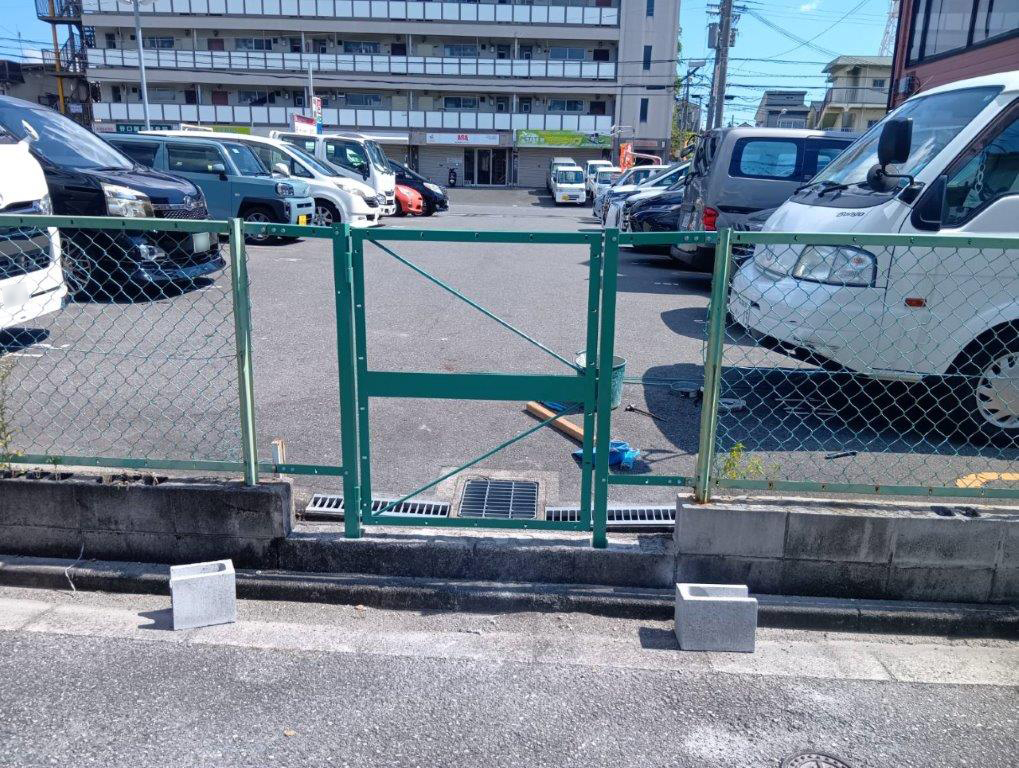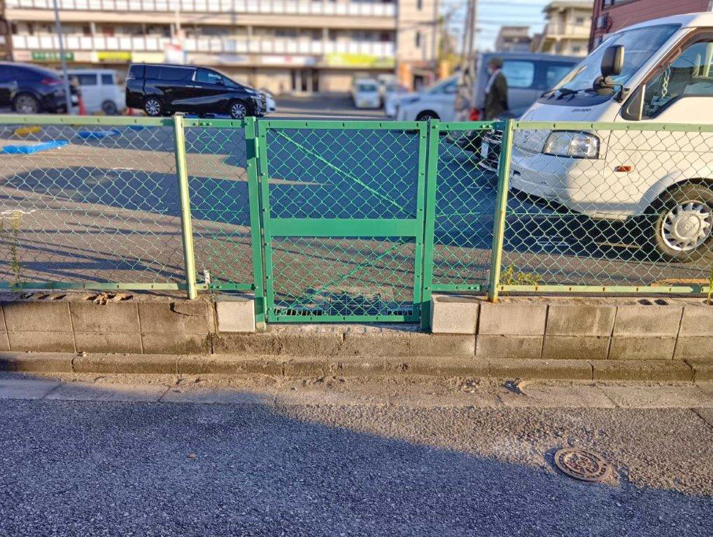 | コインパーキングのネットフェンスの空き部分にCB150を両サイドに設置、ネットフェンス門扉H1200を設置、両サイドにネットフェンスH1000を設置し、既存のネットフェンスに繋げました。(2ヶ所) |