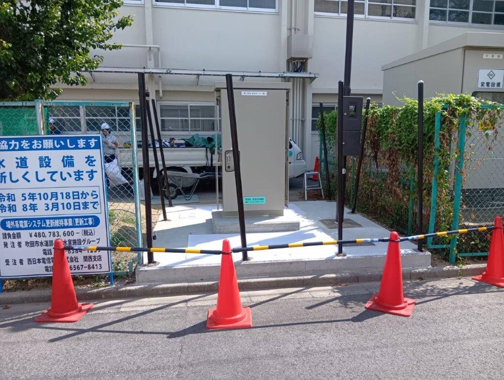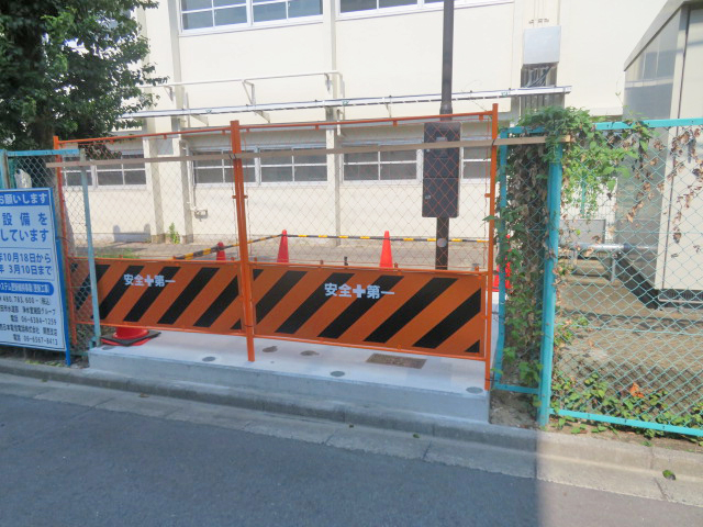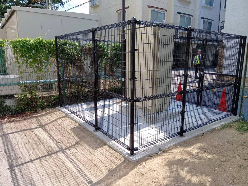 | 水道設備の周囲に、朝日スチール・UNフェンスH1800(UN-A1800-40)、片開門扉を設置しました。 |