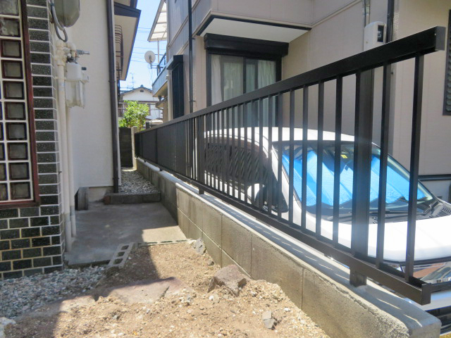 | 古くなったブロック塀の上4段を撤去し、四国化成・クレディフェンスHG2B型・H600を設置しました。 |
