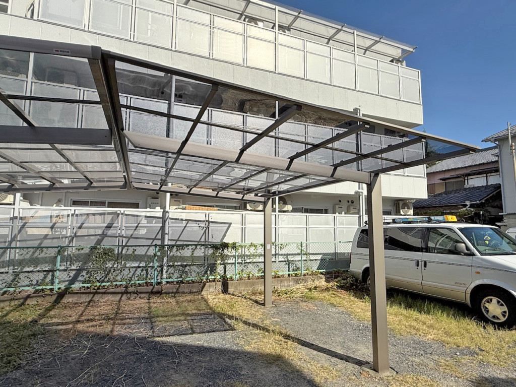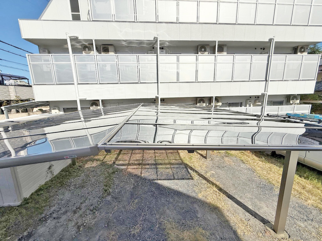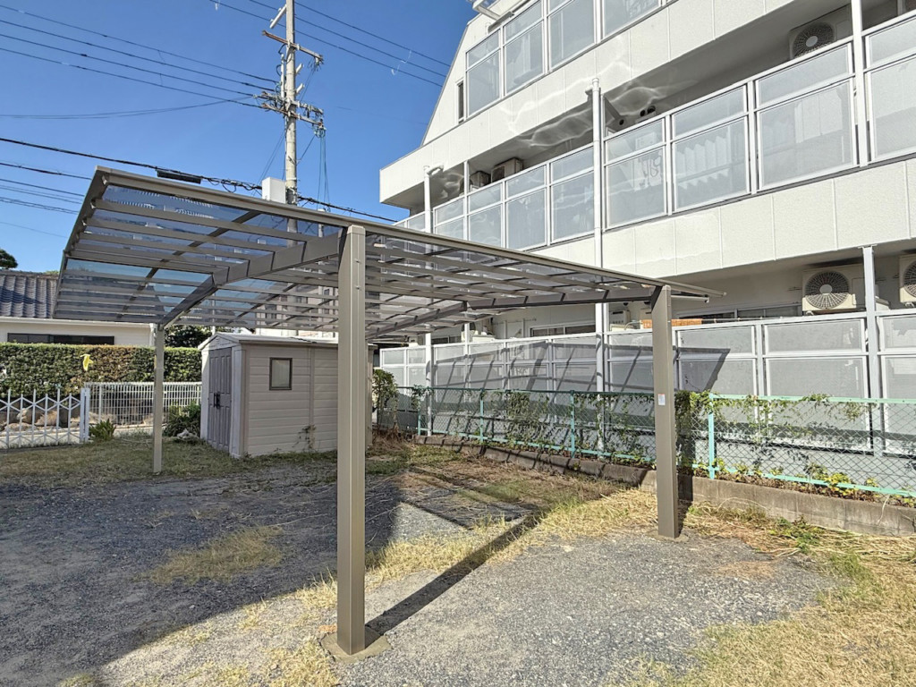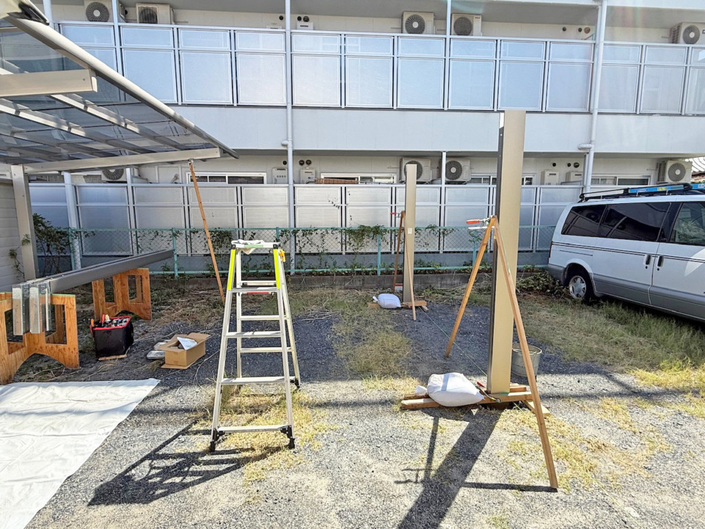 | 過去に四国化成・ライトポートを設置した現場で、隣にもカーポートを設置したいとの事で、本来ならば同じ商品を設置し、連結させたかったのですが、ライトポートが廃番商品の為、LIXIL・ネスカF1台用を同じサイズの商品を合掌する形で設置し、隙間をコーキングしました。https://aibi-reform.net/examples/11977 (過去施工事例) |