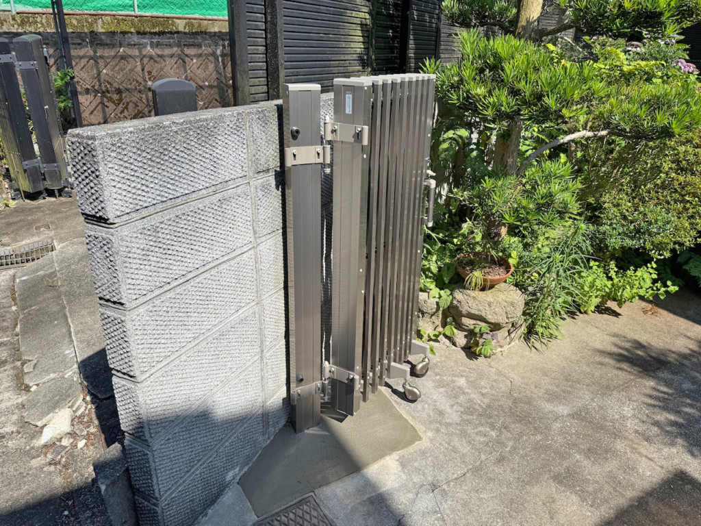 | 既存のアコーディオン門扉を撤去し、四国化成・バリューアコーA1型を設置しました。 |