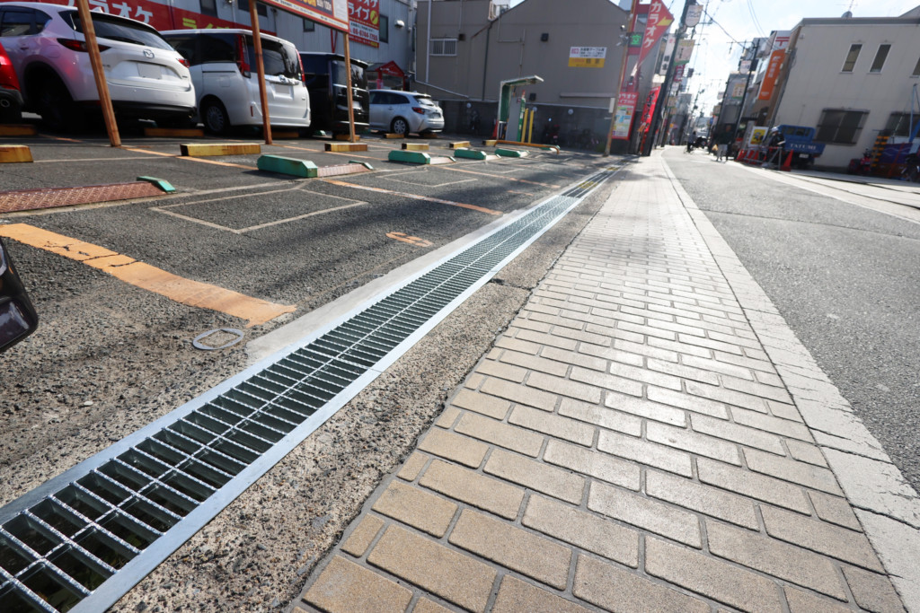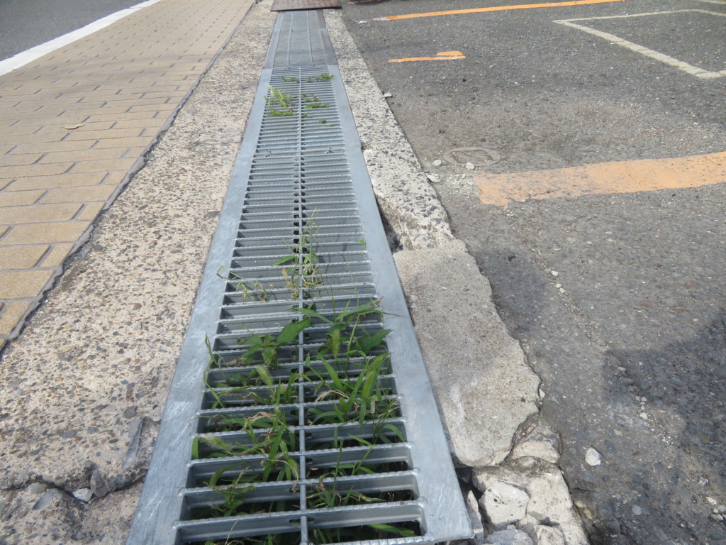 | 劣化したグレーチングを撤去、損傷した側溝を斫り、速乾性のモルタルで側溝を補修、新たにグレーチングを設置、また鉄板下の側溝も補修し、鉄板のビスが外れていた為、新たに固定しました。 |