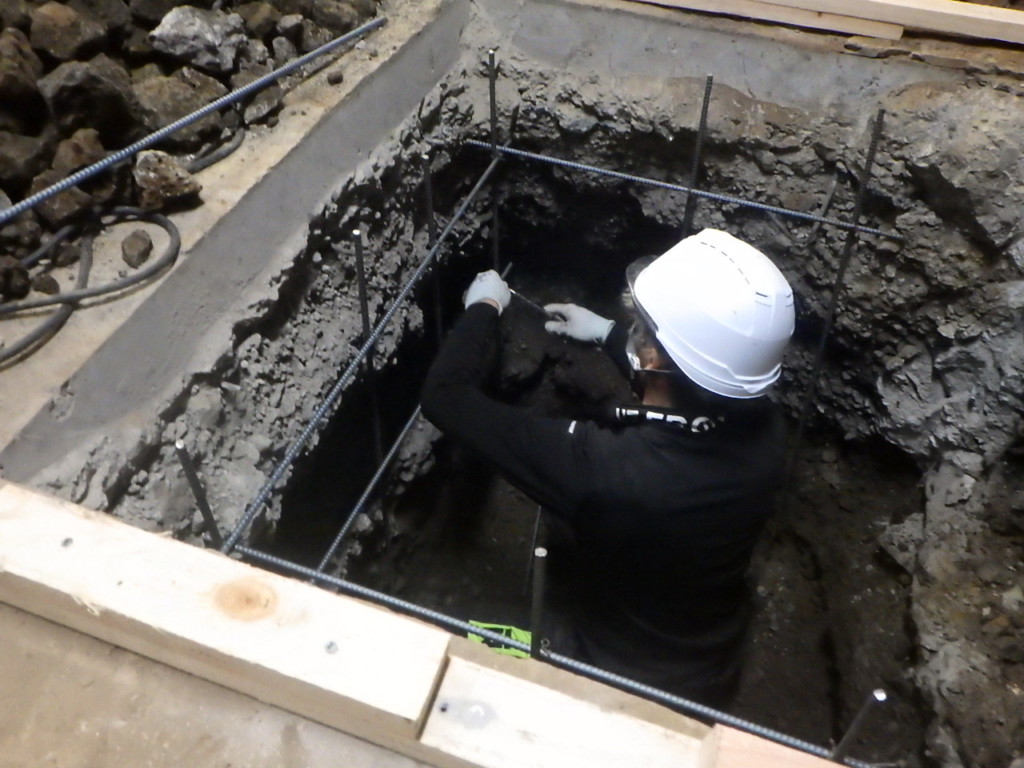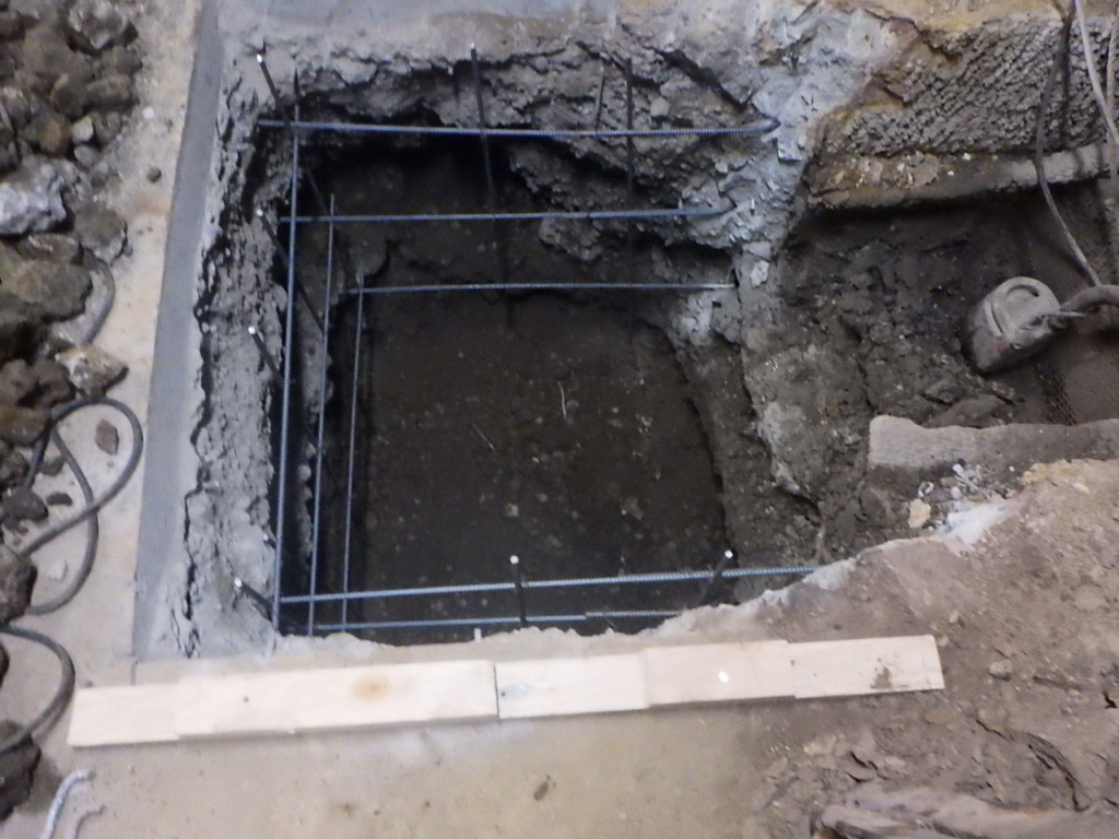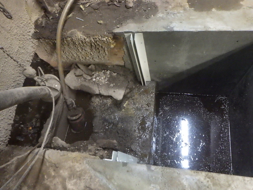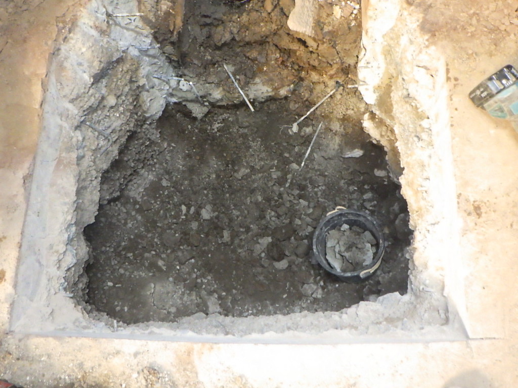 | 工場の貯水槽を拡張する為、1m角の範囲をH1500の深さで斫り、周りは擁壁で立ち上げ、貯水槽を拡張しました。土間のコンクリートの厚みが300程あった為、斫りに困難致しました。 |