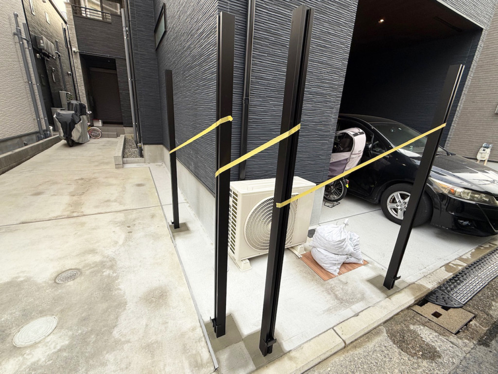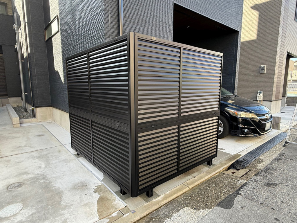 | 住宅の室外機を四国化成・クレディフェンスHG6型・H1800(多段仕様)で囲いました。 |