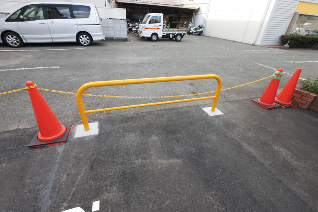 | お店の駐車場の仕切り部分に、帝金バリカー横型を設置しました。 |