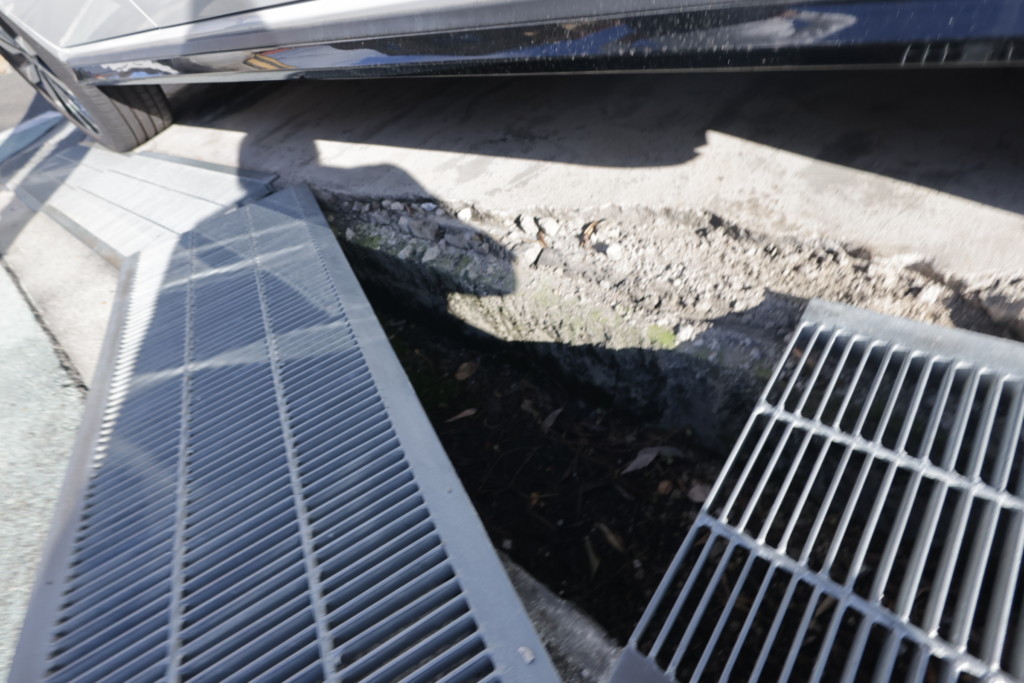 | 駐車場前の側溝が損傷し、グレーチングがガタついていた為、側溝を速乾モルタルで補修し、一部グレーチングを新設しました。 |