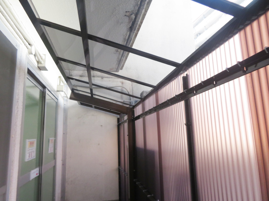| 施設の出入り口前に四国化成・バリューポートRを設置、目隠しにポリカ波板を貼りました。 |